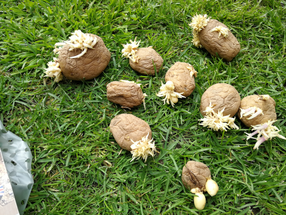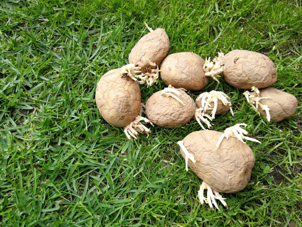 Seed potatoes already sprouting and soft