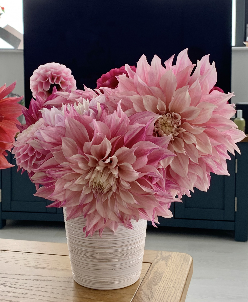 The Pom Pons seem to have a much better vase life - they could last up to one week. The rest, and in particular the dinner plates don’t seem to last beyond 5 days, and are at their best for 3 days in my experience. I use proprietary flower food. The one thing I don’t do is to change the water and cut the stems every 2-3 days - which is the advisable thing to do and supposedly prolongs the vase life.. but I haven’t got the patience.. besides these dahlias are such prolific bloomers that I end up with bucketfuls every 3-4 days.. thus there’s no incentive for me to ‘prolong’ their vase life.