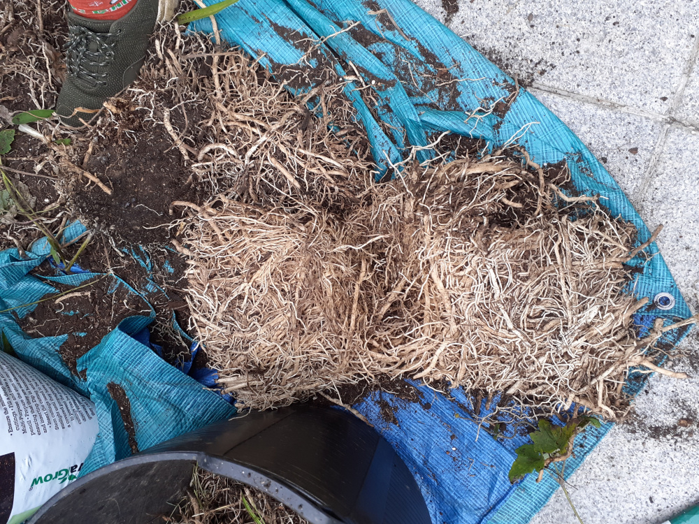 We have Agapanthus in large pots. One has not flowered, for 2 years. Finally got it out to divide . I think I might know why it didn't flower now.😄 This is les than a third of the roots!