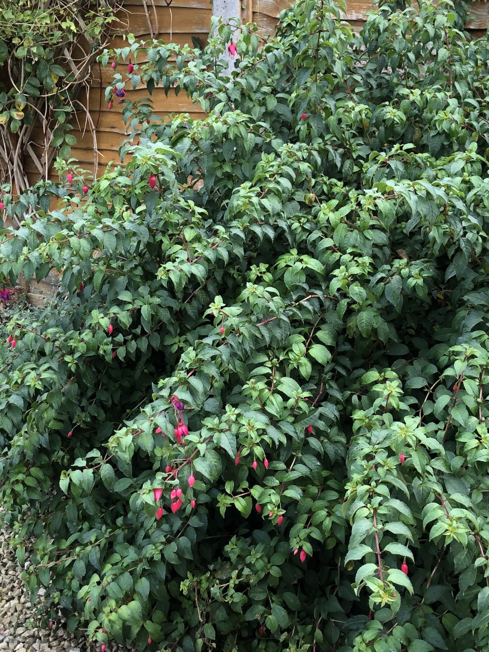 Fuchsia blooming underneath but mostly foliage