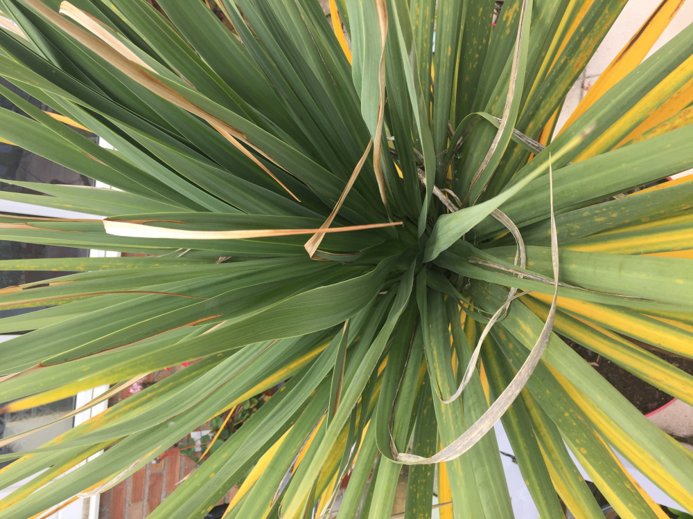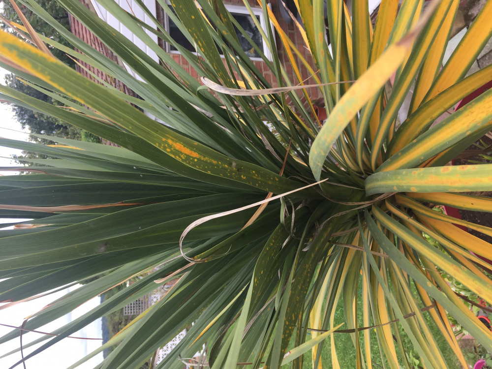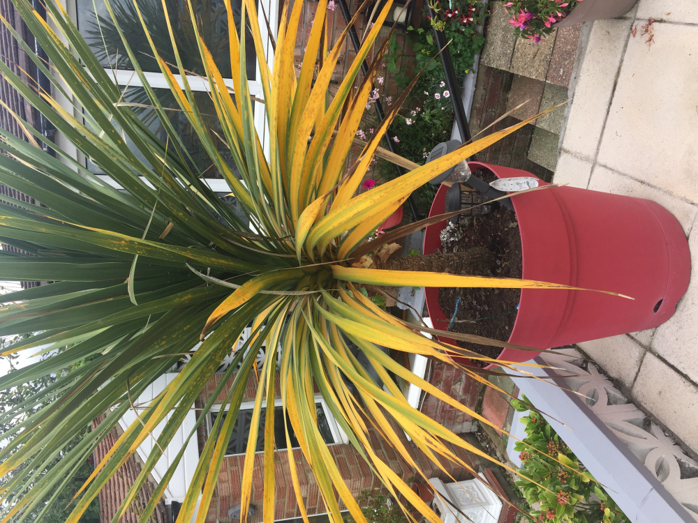 Please help my cordyline is suffering. It has too many yellow leaves and has some very dried out thin leaves, not sure what to do. I have noticed a number of spiders could this be the problem? My other one which is much bigger and is doing pretty well.