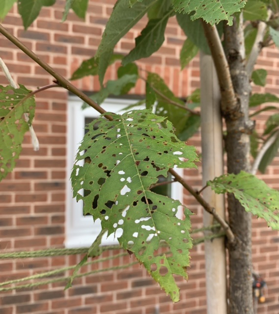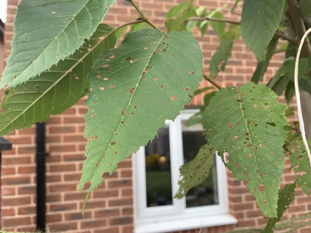 I’ve just had a young cherry tree delivered and I’m concerned about the leaves on the tree being full of tiny holes. I’m not sure wether it’s a pest or a disease. I can’t see any obvious pests on the tree. Am I worrying needlessly?