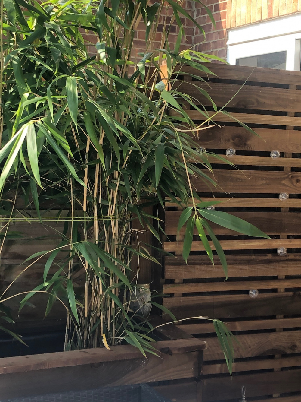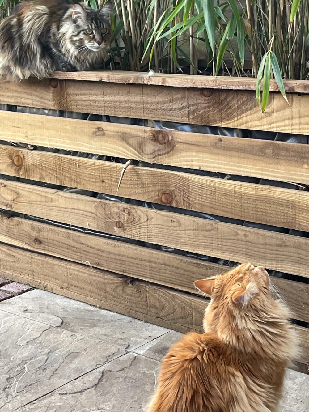 I adore cats, haven't had one since 2006,hubby won't let me,long hair ginger looks like daughters, chewy (,star wars fan,) who was taken over where she used to live and has been taken over now. So busy lusting after them,sorry didn't read question! Oh, I've got 3 bamboo in large pots, they need a huge amount of water
