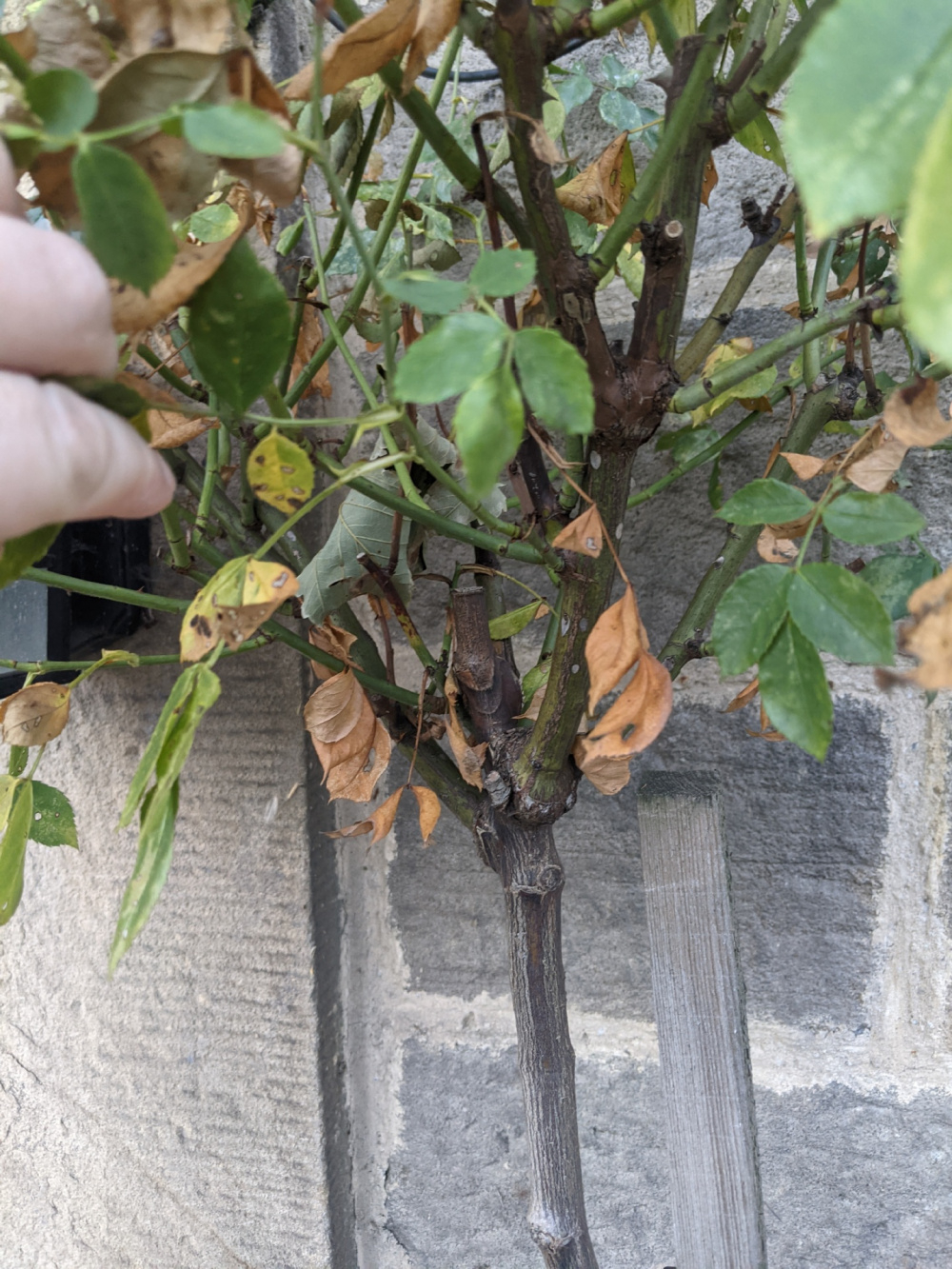 I'm wonderig if this is another. Standard rose, but grafted part looking split and brown. Worth trying to save or buy a new one over the bare root season?