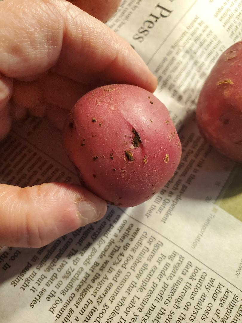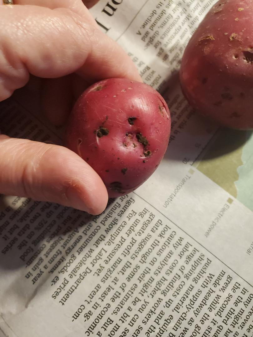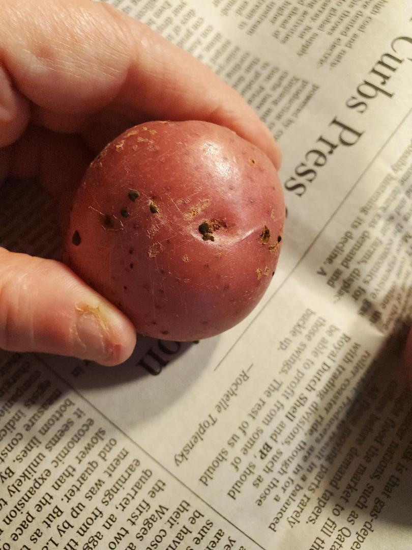 This year, I grew Red Norlands. I scrub the potatoes but there are bits of soil that just won't come off. I've tried soaking them in hot water for a while and then scrubbing them with no luck. Is there something I should add to the water to help get off the soil?