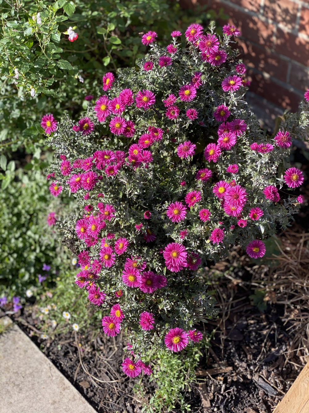 Thank you all. I can now see where I have gone wrong. I will water more as it is in a very sunny spot and also put other plants in front of my asters like hardy geraniums (my favourites). Those will have to be quite compact as it is in a very narrow bed.