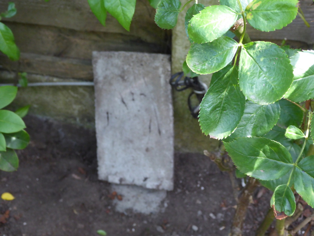 It originally was just a hole I'd stitch drilled and covered with a bit of slate. The house next door has presently been unoccupied for a year, the garden completely out of control and he might not have found his way back if he got out.