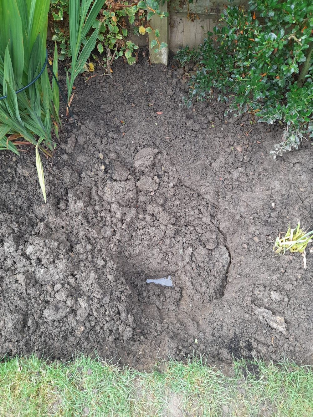 We have put some soil back in the hole, but you can see from this picture that there is still water sitting at about 1ft to 18" below the surface.