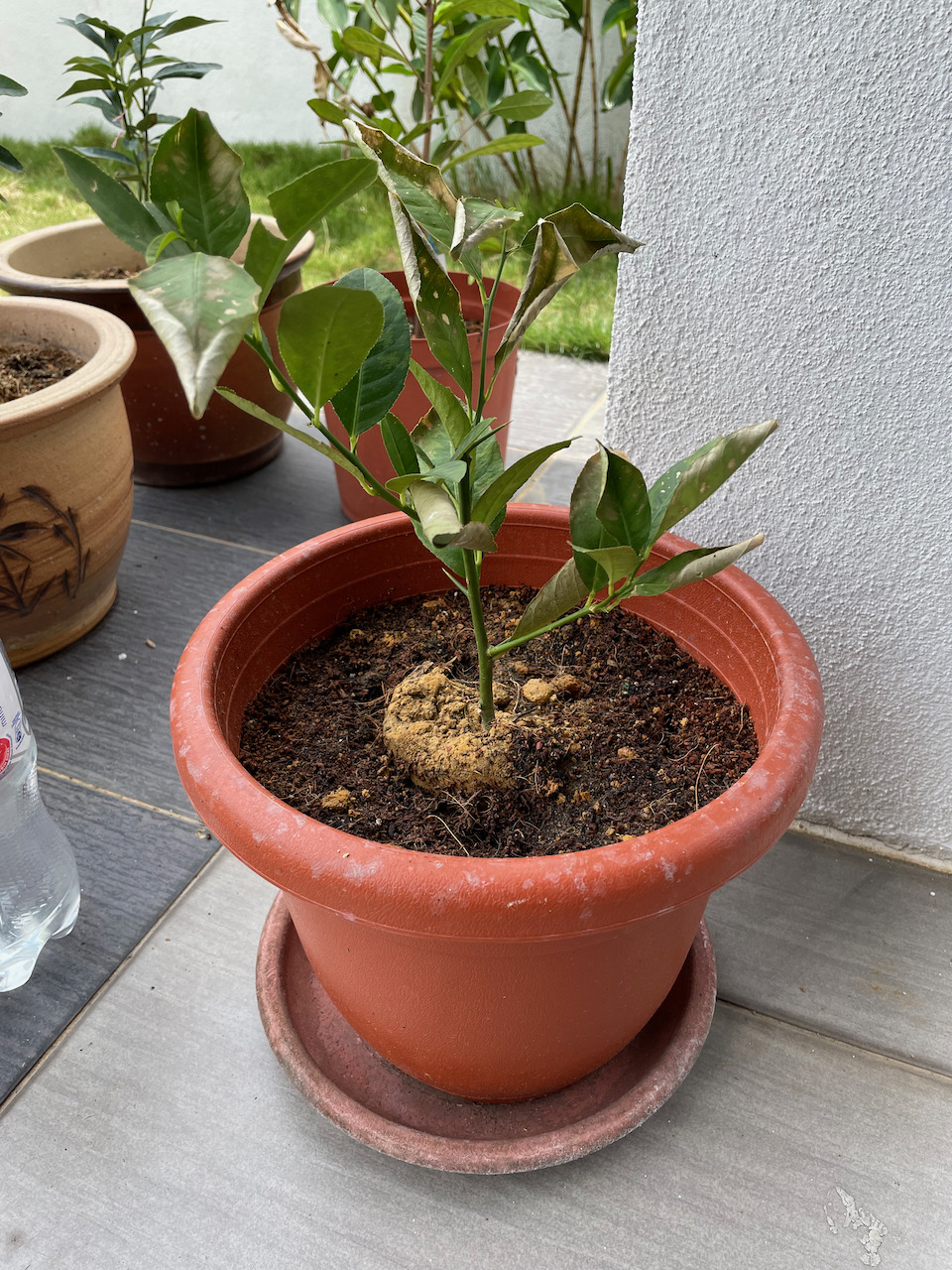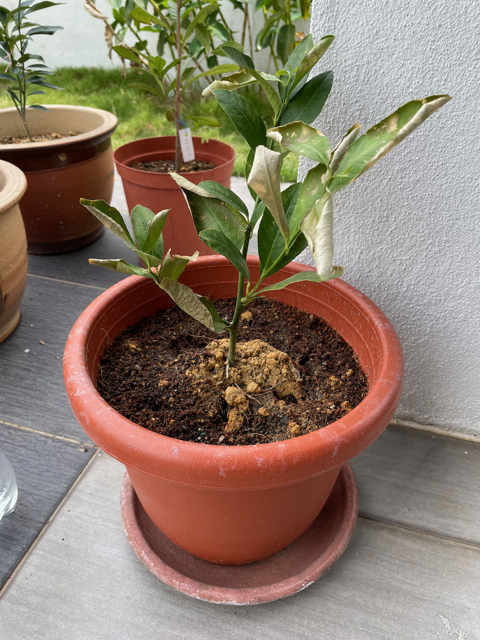 the orange stuff is yellow soil that came with the plant (clay soil?), I bought this online. It’s some kind of sticky soil, feels quite hard now, couldn’t penetrate with soil PH meter.