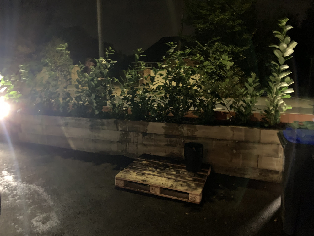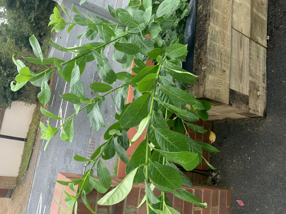 Hi l hope someone can advise me. I planted a dozen Laurel which came in pots. I made a large planter and used a lot of topsoil, planted then a foot apart roughly. This is hopefully to provide us with some privacy as they grow. They look ok but some of them are dropping. Should l trim them down or tie them upright. I have attached a few pics to give you a better idea.