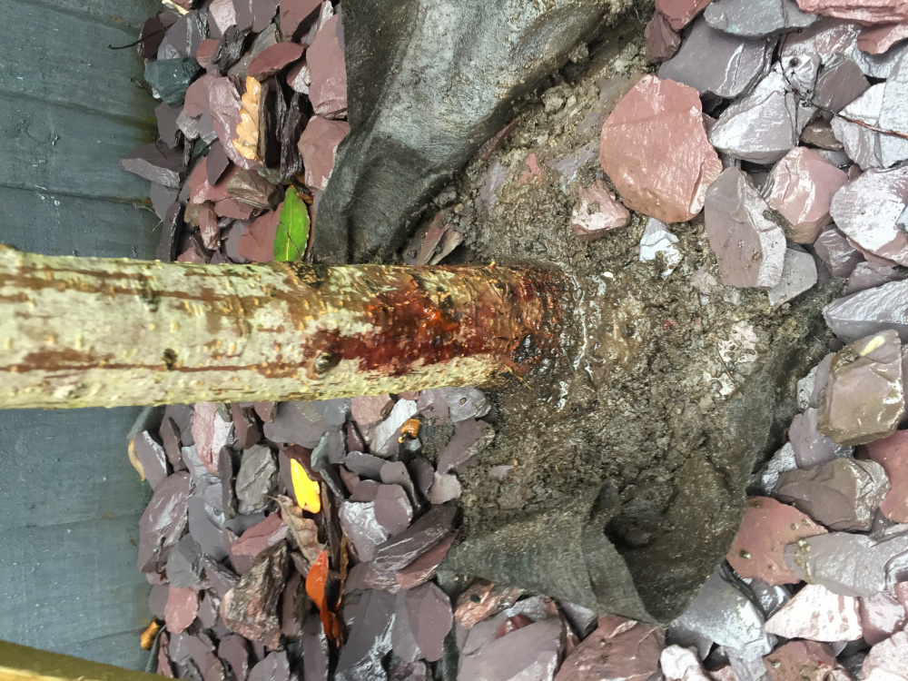 One of the trees now has a canker with orange/red sap coming from the main trunk.