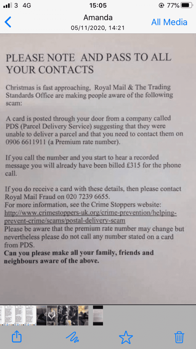 A parcel delivery scam