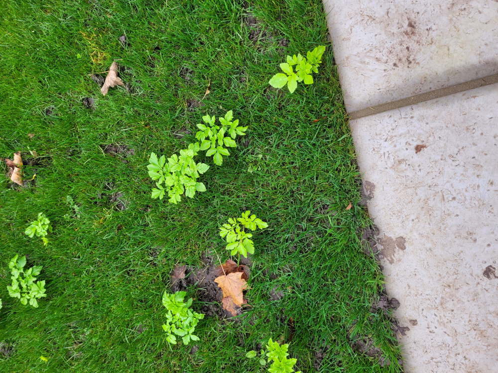 Almost impossible to dig out of the lawn without making a mess as you need to get every bit of root out and they spread underground.