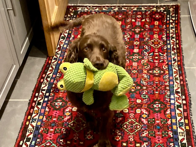 His nibs ate his chicken and rice with antibiotics mixed in with it. Not with as much gusto but it's a step forward.ย I've decided that I'm going to have to buy him a soft muzzle to wear when he's doing his quartering and exploring to stop him from eating stuff that he shouldn't. I mentioned it to the vet yesterday and she was in favour of it.ย