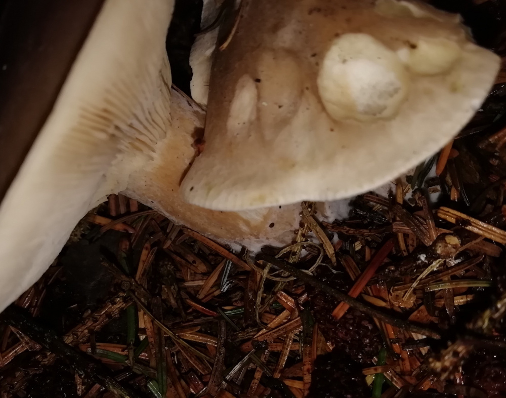 Can someone ID this fungi please? A friend has sent me this picture, taken this morning, not a very good one and I can ask for a better one for a positive ID if it helps. As you can see it's growing in leaf litter, it has gills.