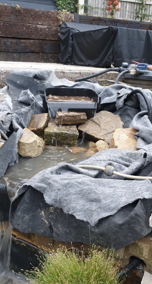 We've just finished building a 3x2m pond in the back garden and I am currently working on the cascade (see picture below - sorry, it wouldn't allow me to rotate it!). Two questions please: