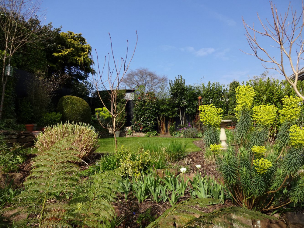 I tried forest green too @Uff! It was the first colour I used on my fence. I found it difficult because it looked gloomy and didn't provide sufficient contrast for natural greens. I lived with it for a couple of years but cursed it every day! Here's some more photos to show how black works magic, but that's a matter of opinion!