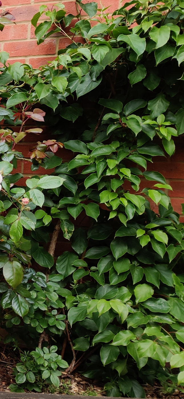 There was a "climbing hydrangea" label uncovered in the soil, but I don't think it matches...