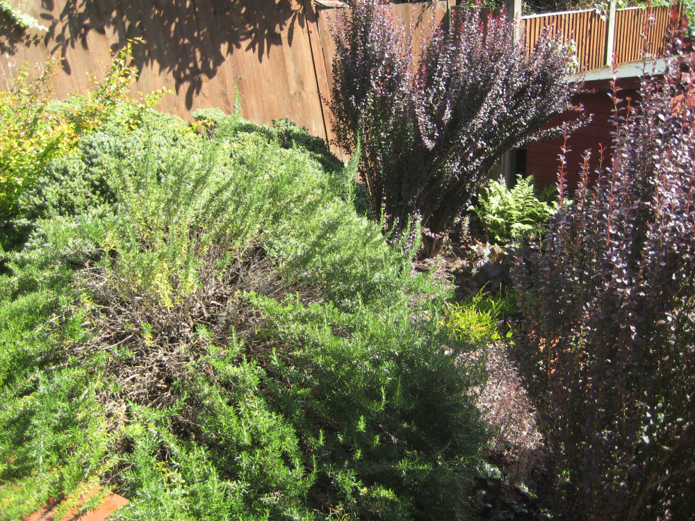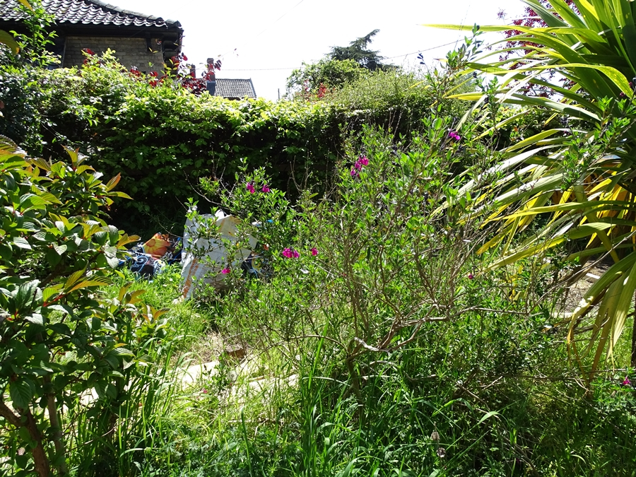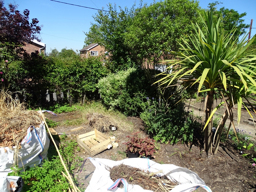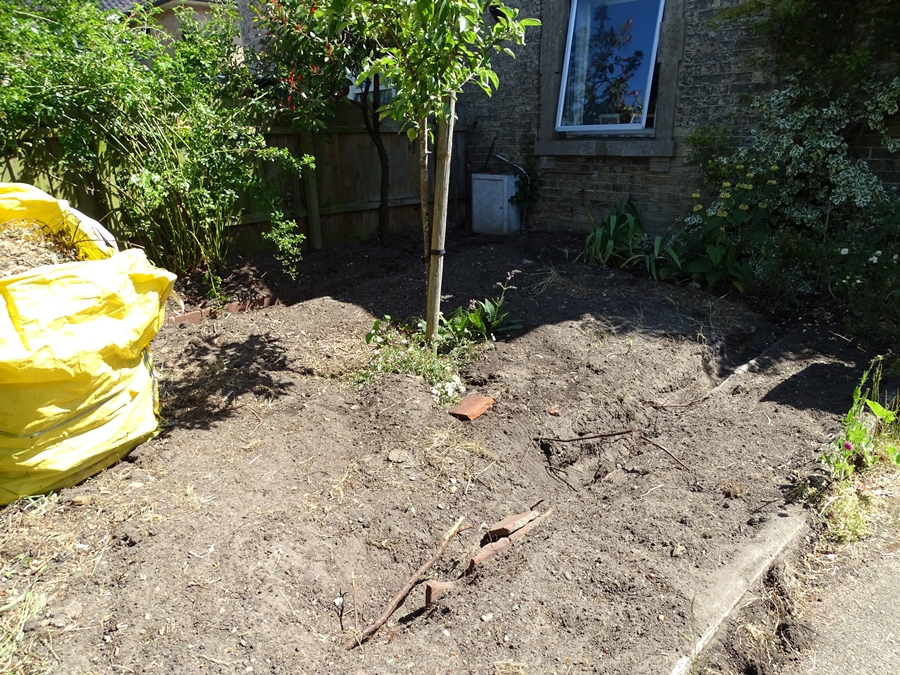 After - the massive phormium was to the left of the yellow bag in the above pic. Whole garden had to be thoroughly picked over to rid it of phygelius - and there is still some left in which pops up around the white gas meter box near the window.
