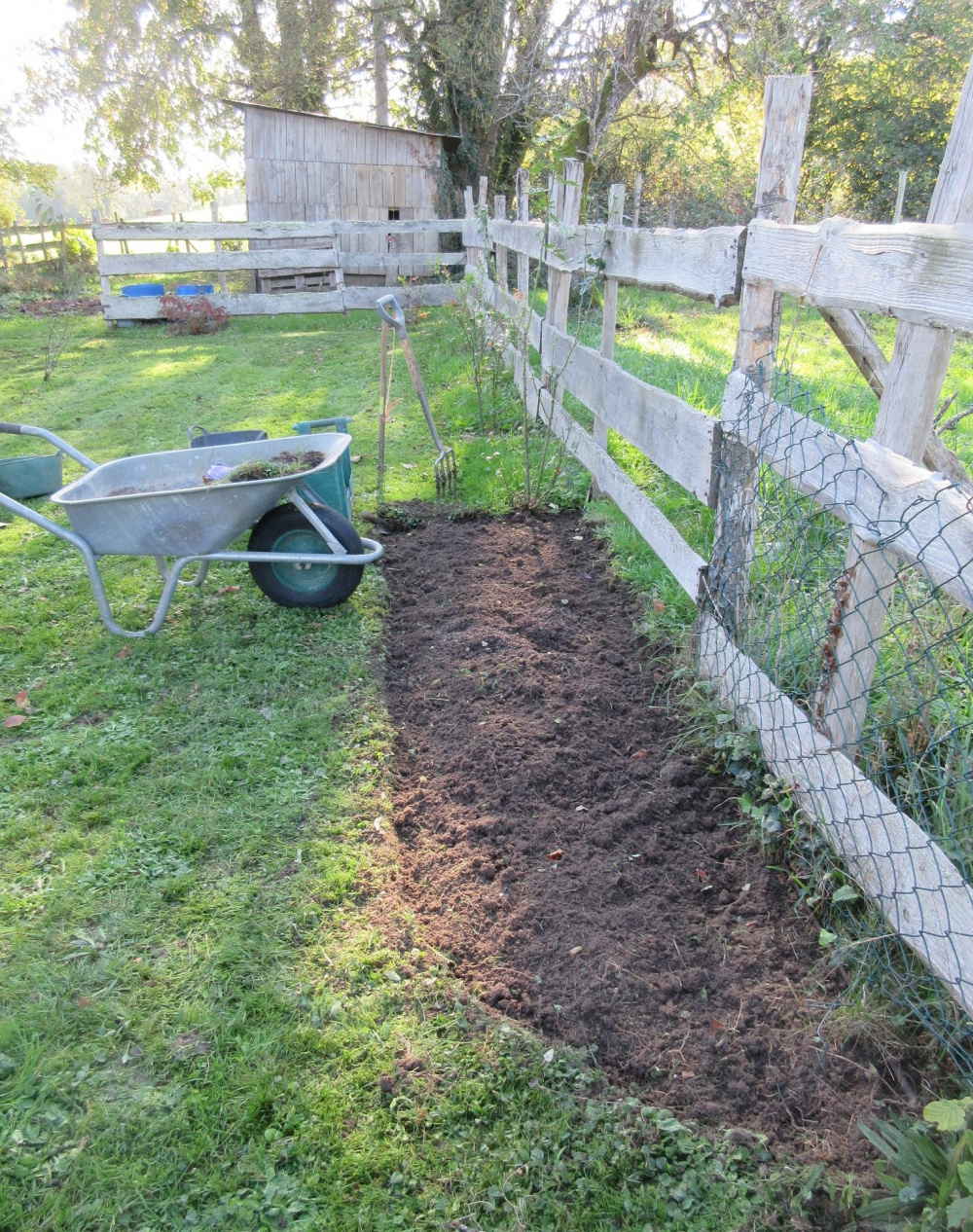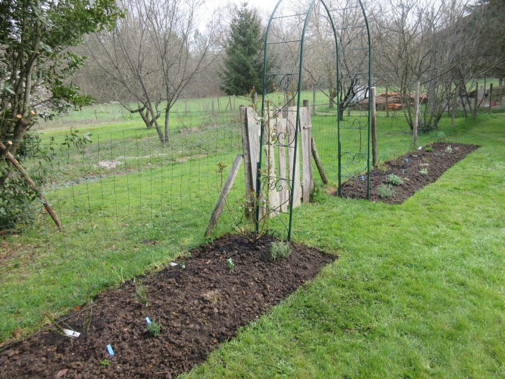 The first beds I made, by the vegetable garden gate.