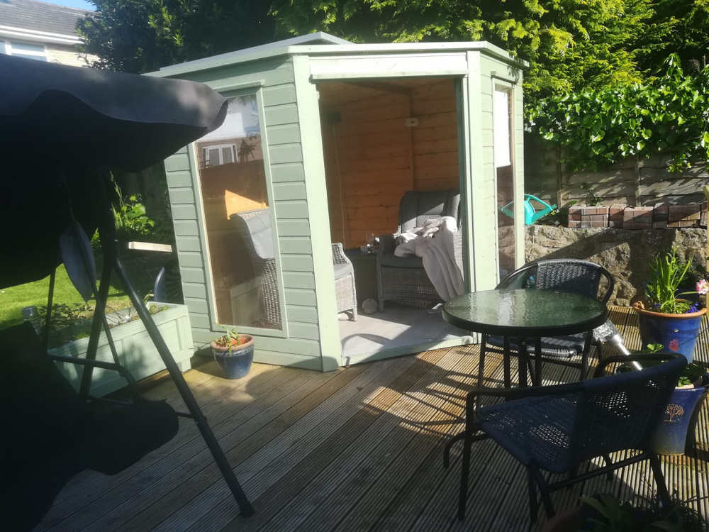 The summerhouse is powered by solar - heating, lights, cooling and it's our little refuge to listen to the burbling stream. Why we waited 20 years to do it, I don't know.
