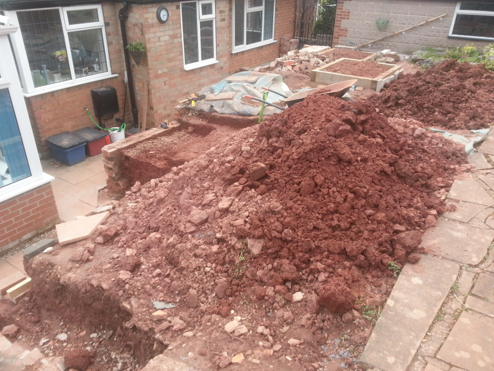 15 Tons clay dug out by hand and carted to skip located on drive at front.