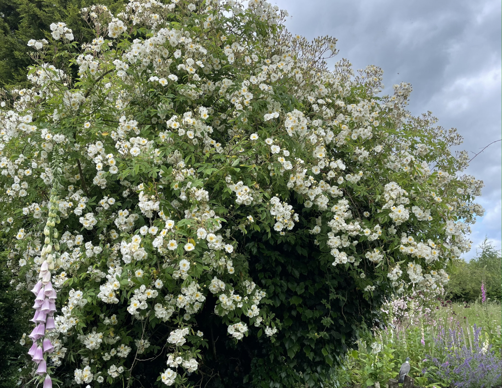 @Athelas the rose is Rambling Rector, brief but spectacular, and a scent to die for. They are not for the faint of heart though, this one is controllable because its on the arbour, i have another in which has engulfed an old shed then escaped into the neigbouring trees and is a probably 8 or 9 metres high and wide. The view on the pic above is the north side, it mainly flowers on the other sides where its pretty spectacular