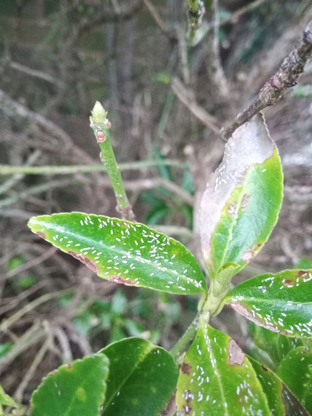 This bug is destroying a beautiful bush in my garden. I've tried various pesticides but nothing seems to even aggravate it, let alone, kill it. I definitely need help in identifying this bug and finding a solution to killing it before a thirty year old bush dies. Thanks in advance.