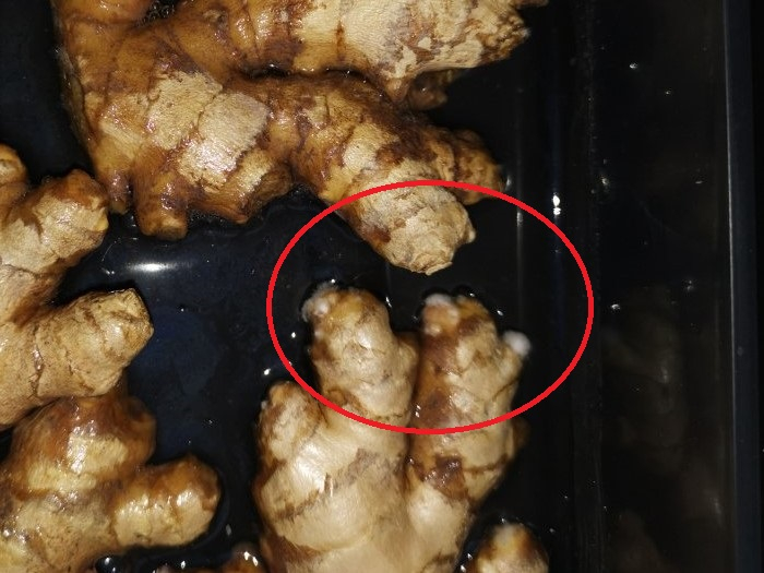 How long should ginger take to form roots? Mine have been soaked in water for 3 weeks now but nothing. Are them white bits mould?