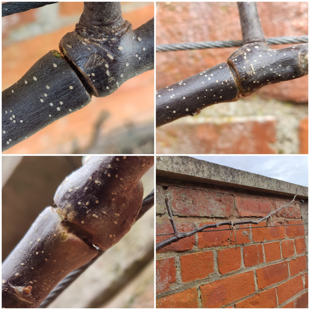 Hi, so I hadn't spotted that a jute twine knot had gotten too tight over the season around a new branch on my espalier apple tree.