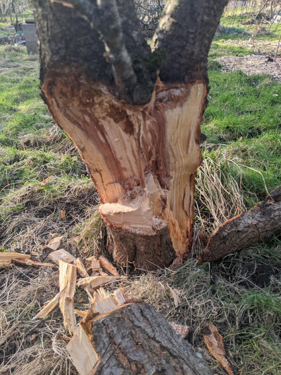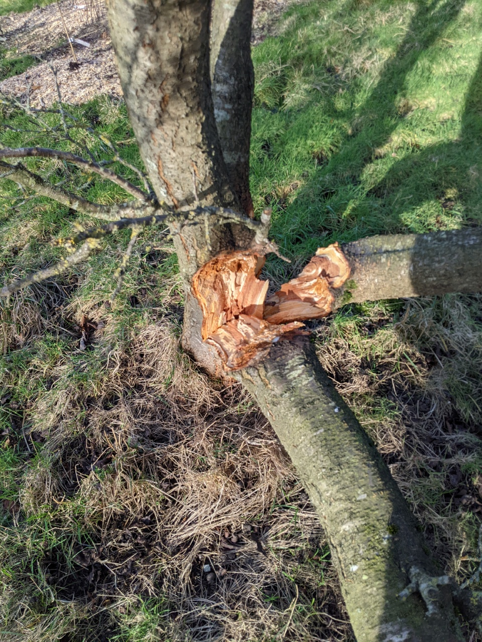 Storm damaged plum tree