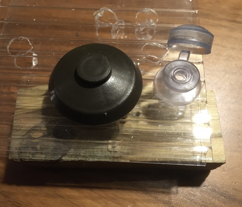 To attach poly to frame I bought the fancy cushioned button fixings (left of pic 2) but they are expensive monsters at 40mm wide and need wider lid timber than is ideal.