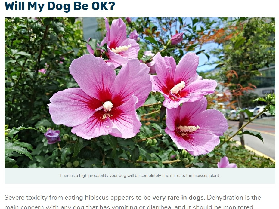 Although it says there's a "high probability your dog will be completely fine" and "severe toxicity from eating hibiscus is very rare", the article errs heavily on the side of removing hibiscus from the garden completely, which seems a bit drastic to me.