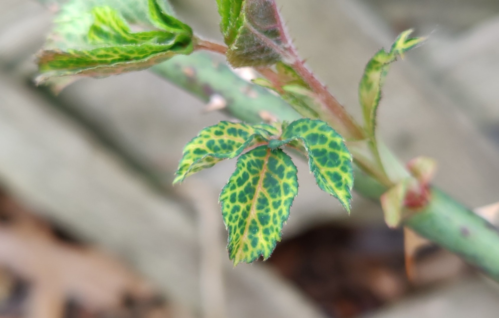 We rarely see Rose Mosaic in the UK because all rootstocks here are grown from seed, so they are virus free.. so whilst I'm not over familiar with seeing it, I feel pretty confident that's what I'm looking at there.