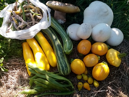 You are well ahead of my Allotment, my courgettes are a miserable failure this year. I am just picking some of the late sown Broad beans French and Runner beans yet to produce anything. I am digging first early potatoes, and some pointed Cabbage are nearly ready, had lots of raspberries but finished now, Plums have just started as have greenhouse tomatoes. Always get something, just not always what we expect. Plants seem to have their own timetable this year. Well done to you.