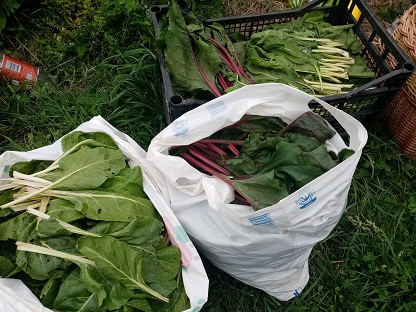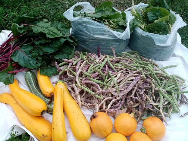 Yesterday's harvest. It's similar like last one, but it's the season for beans, courggetes, chard and few other things. My tomatoes are quite behind this year, so I can expect first fruits in two weeks. We had quite a lot of rain last few days, and I don't need to water at least next five or six days.