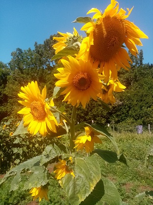 Great pictures, no real heatwaves here (thank goodness), but it's been a very slow start to the season. Lots coming on now, in fact after a week away we have a glut of beans, courgettes, tomatoes etc. We only grow a few sunflowers in the garden but the squirrels wreck the seed heads so we can't leave them for the birds unfortunately.