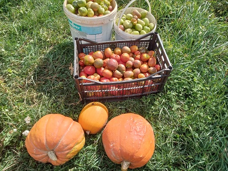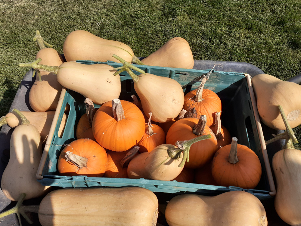 Great pictures @Ante1. I gathered my pumpkins and butternut squash yesterday, I decided they were not going to grow any more as the plants were drying up. I grew the small orange pumpkins this year (Becky) as I find with the large type (spellbound) I only get 2-3 big ones. We mostly make soup with them so even if I have to use 2 at a time I will still get more this way. 14 orange pumpkin, and 12 butternut, (sweetmax). There are still 2 blue crown prince to harvest but the leaves are still green on those so I will give them another week or two.
