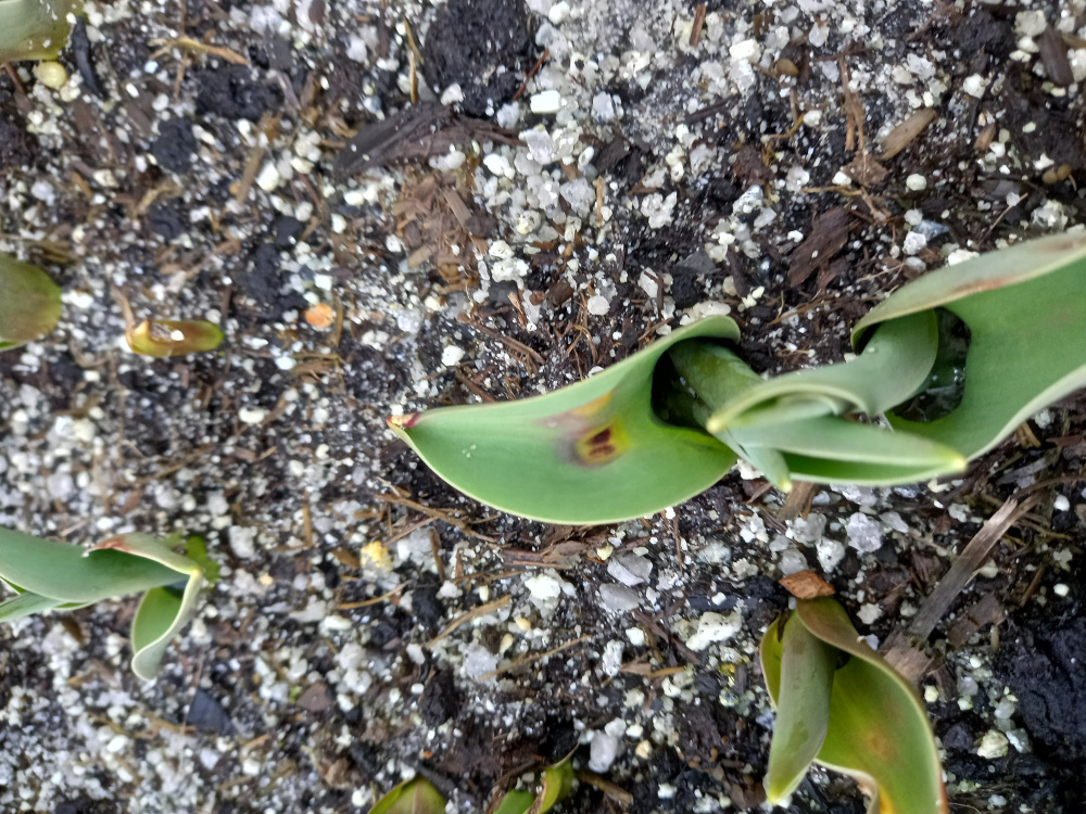 Completely refreshed my tulip bulbs and soil for pots this year but have noticed some appear to be affected by Tulip Fire.