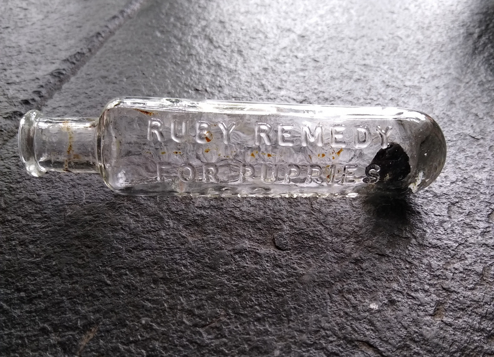The other bottles are tiny but not ridged. I am guessing they held some kind of noxious contents, I am not sure when ridges bottles were introduced.