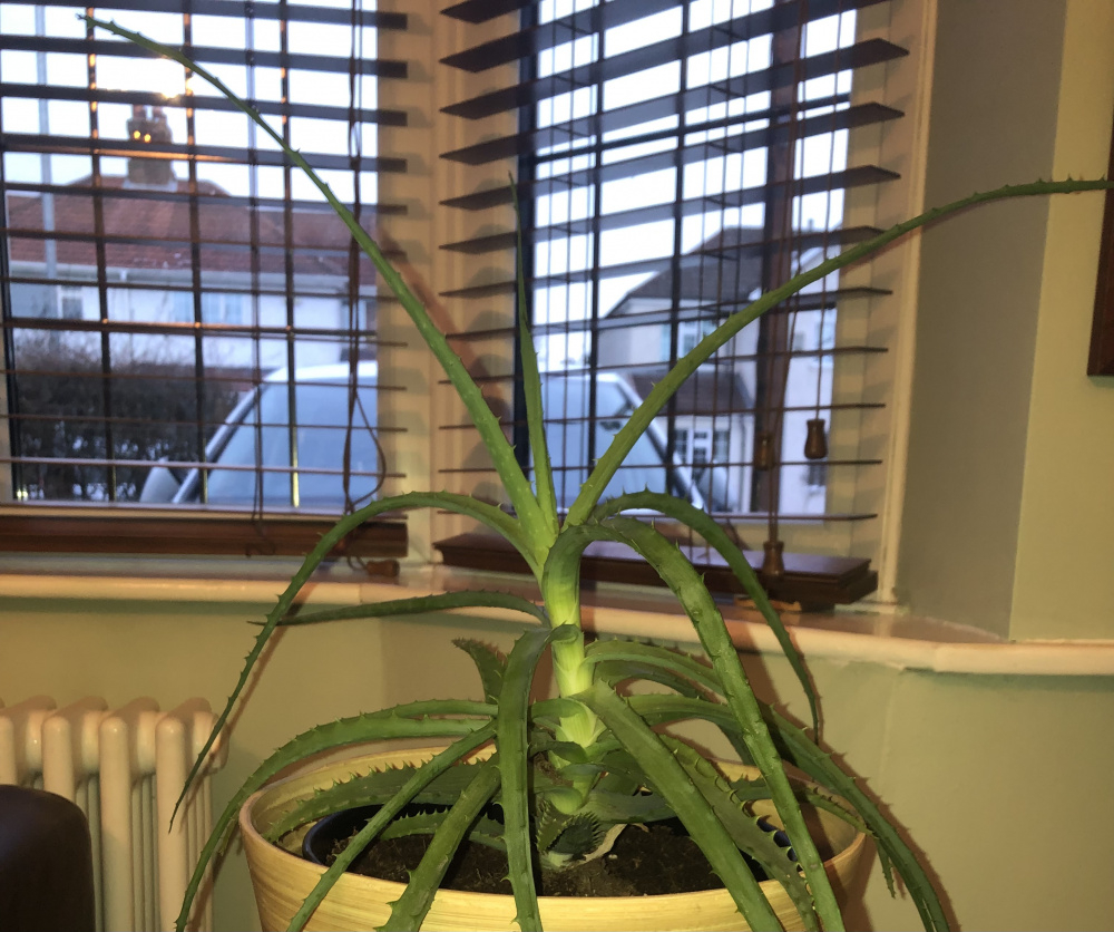 I’ve had this Aloe in a deep clay pot with drainage for about two years. It’s growing…but too leggy? It’s a bit droopy. I might have overwatered in the past but it’s bone dry right now - even when I stick my finger up the drainage hole it’s dry. I water every three weeks or so. I can’t remember what soil I used but it seems to have grit in - but maybe that’s what it came with. It’s in just about the brightest place it can be - on a shelf right opposite an east facing window in a small bathroom. It gets direct light for a few hours a day. I don’t have a south facing window and the west facing windows ledges belong to the cats 😂. What do I do?!