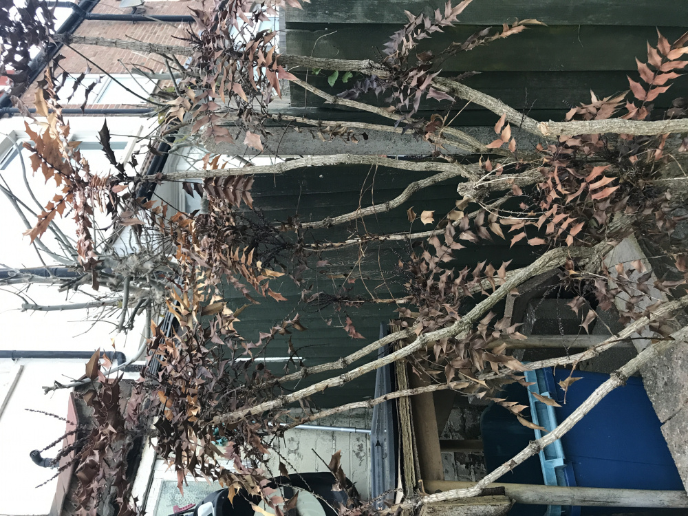 When we moved here, nearly 40 years ago, I discovered the stem of a Mahonia growing under some trees. I wasn't that keen on them then, though some of the newer ones look more interesting, but I left it anyway, having nothing better at the time.