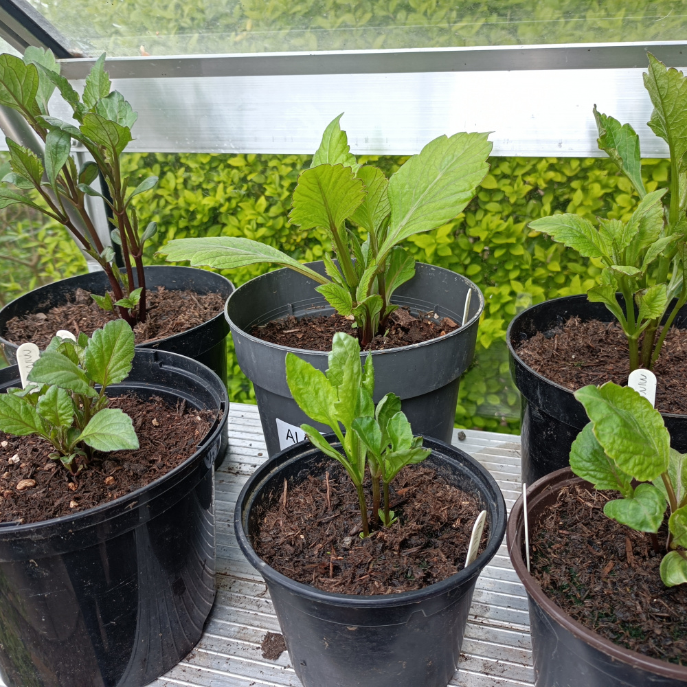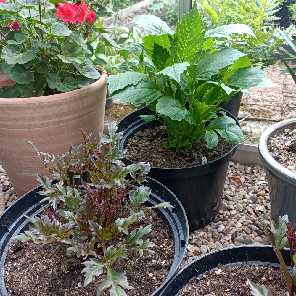 Dahlias, also in the greenhouse. Some established tubers in big pots and some grown from seed last year.