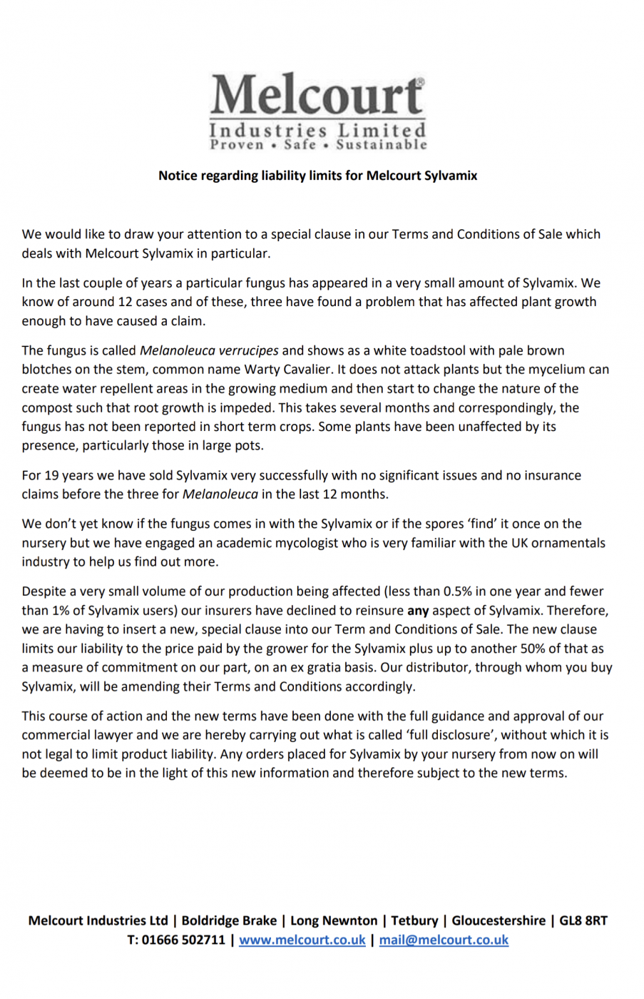 You said you saw it @garryfox98164422 or maybe you used it as an excuse to plug this brand of compost which frankly seems to sell for more than the already excellent and pricey Sylvagrow Interestingly Melcourt have acknowledged issues with heir professional products and have issued the pictured statement