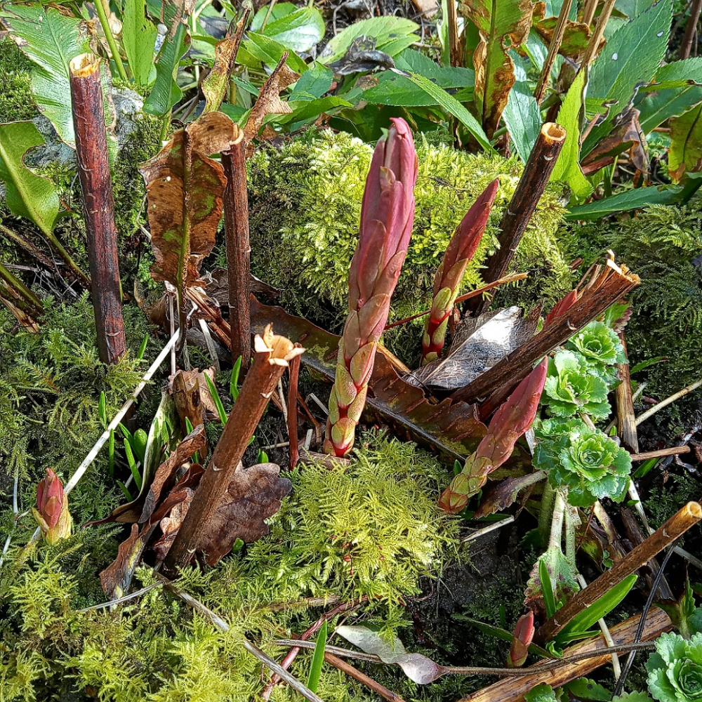This is in my new garden , does anyone know what it is ( not Japenese Knotweed I understand? ) It's in a shallow soil in limestone bedrock . The stalks from last year are hollow dry there are several new shoots . Many thanks Phil
