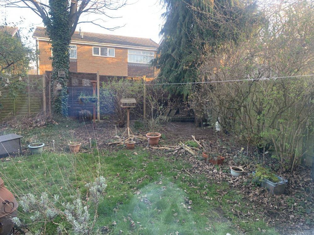 There’s dogs and grandchildren. Also the only access is through the living room 🥺( I know I really don’t think the landlord thought about it) I really like the idea of a woodland garden but it’s just such an ugly bare spot atm