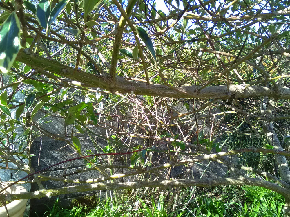 Hello. I was sweeping up leaves around my pots and noticed that although my Holly looks reasonably healthy, there were a lot of bare and dead stems in the middle of it. I realise that the weather causes problems ( we're having gale force winds here at the moment even though forecast is for higher temperature) as well as previous storms. I try to keep it well watered during the really dry days ( not very often) and I can't see any signs of pest damage. Does anyone know why this is happening ?? The pictures are taken from both sides of the tree. Thanks