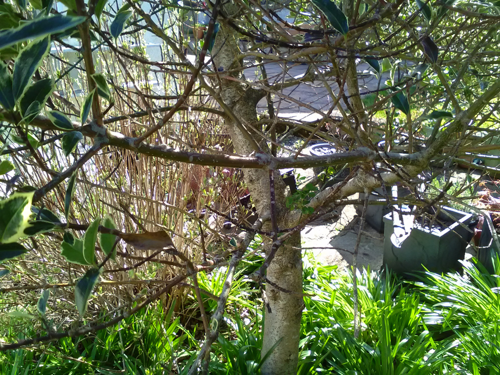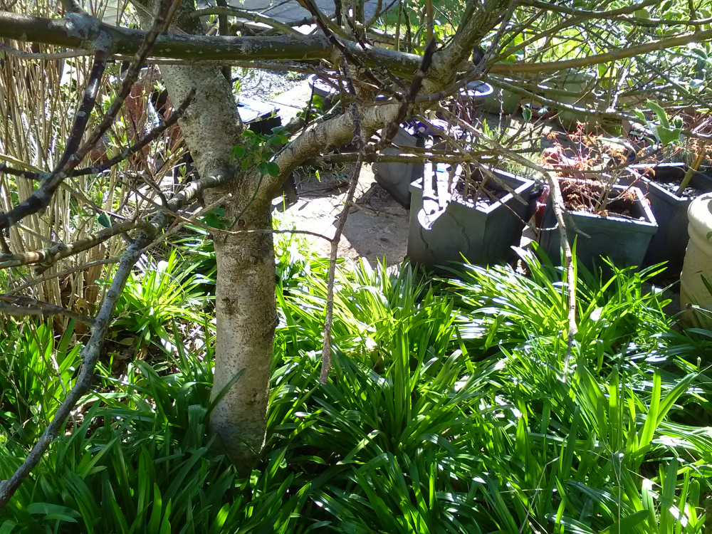 I passed one in a garden yesterday, and it reminded me of this thread. A similar situation, and they've raised the canopy to clear a good four or five feet of trunk. Allows more light and space for the planting below.