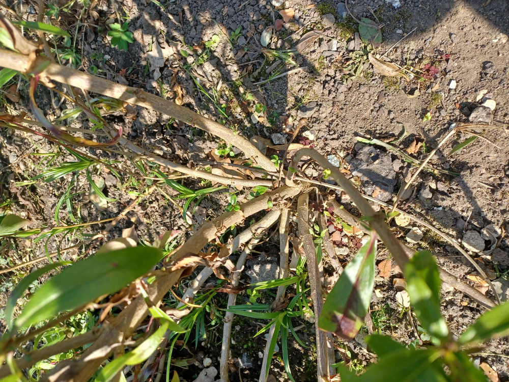 Hope you're enjoying the sunshine. I have these penstemon, which are an eyesore and getting in the way a bit. As I understand it I should leave them a bit longer? Is there anything I can do in the meantime to tidy them up a bit? I'm clueless on this sort of penstemon, thank you.