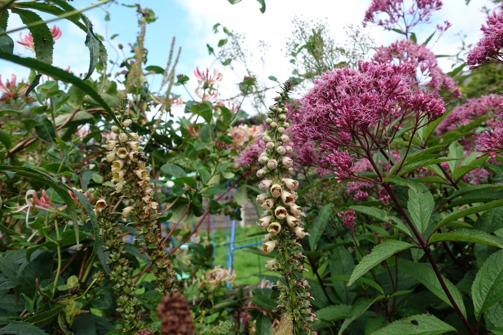 Sadly the only picture of Digitalis Gigantea with Eupatorium Purple bush . I do have some D.Parviflora seeds to try this year , also tried Digitalis Stewartii which is supposed to be one of the tallest varieties unfortunately they got swamp out.